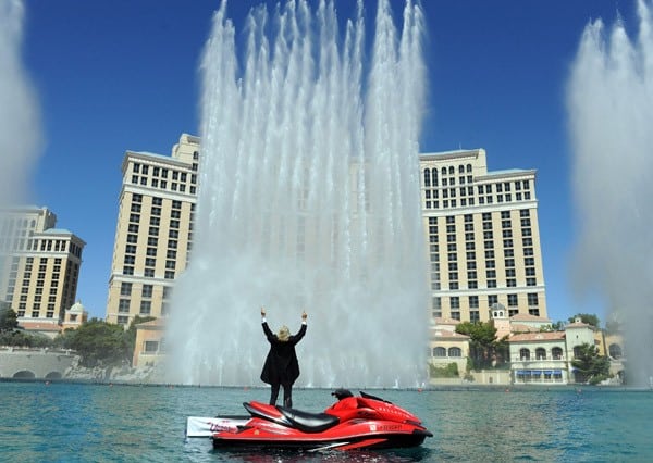 Richard Branson promotes Virgin Airlines in the Fountains at the Bellagio. Photo credit: ContactAnyCelebrity.com